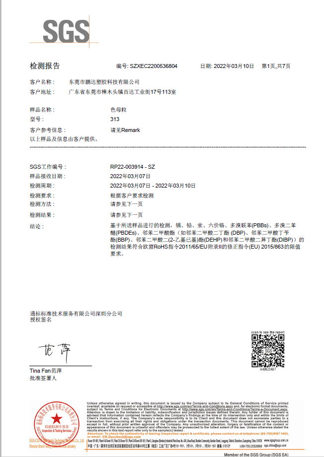 東莞市鵬達塑膠科技有限公司是一家集色母、色粉、功能母粒、染色抽粒、改性工程塑料的研發(fā)、生產(chǎn)、銷售于一體的生產(chǎn)企業(yè),座落于中國塑膠商貿(mào)重鎮(zhèn)-廣東省東莞市樟木頭鎮(zhèn),公司建立了一套完善的研發(fā)生產(chǎn)、品質管理、銷售服務體系,依托自身強大的研發(fā)能力及嚴謹高效的管理,生產(chǎn)高品質、高技術含量的健康環(huán)保色母粒和多功能母粒,年生產(chǎn)能力達萬噸,給廣大客戶提供了可靠的交貨保障。